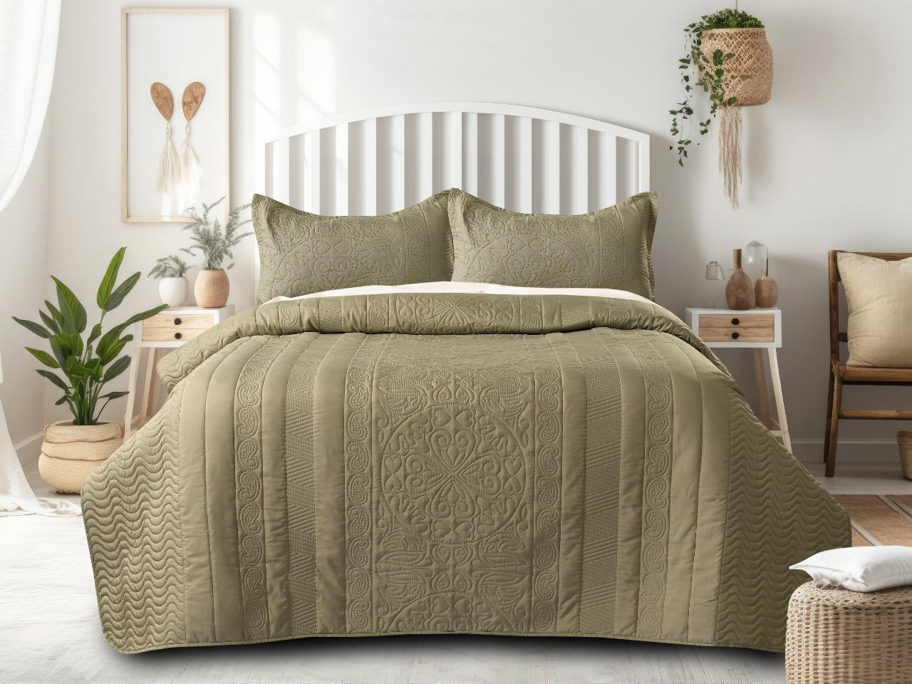 Bamboo Quilted Bedcovers with Tassels – Beige Double Bedcover 2 Pillow Covers | Sage Green
